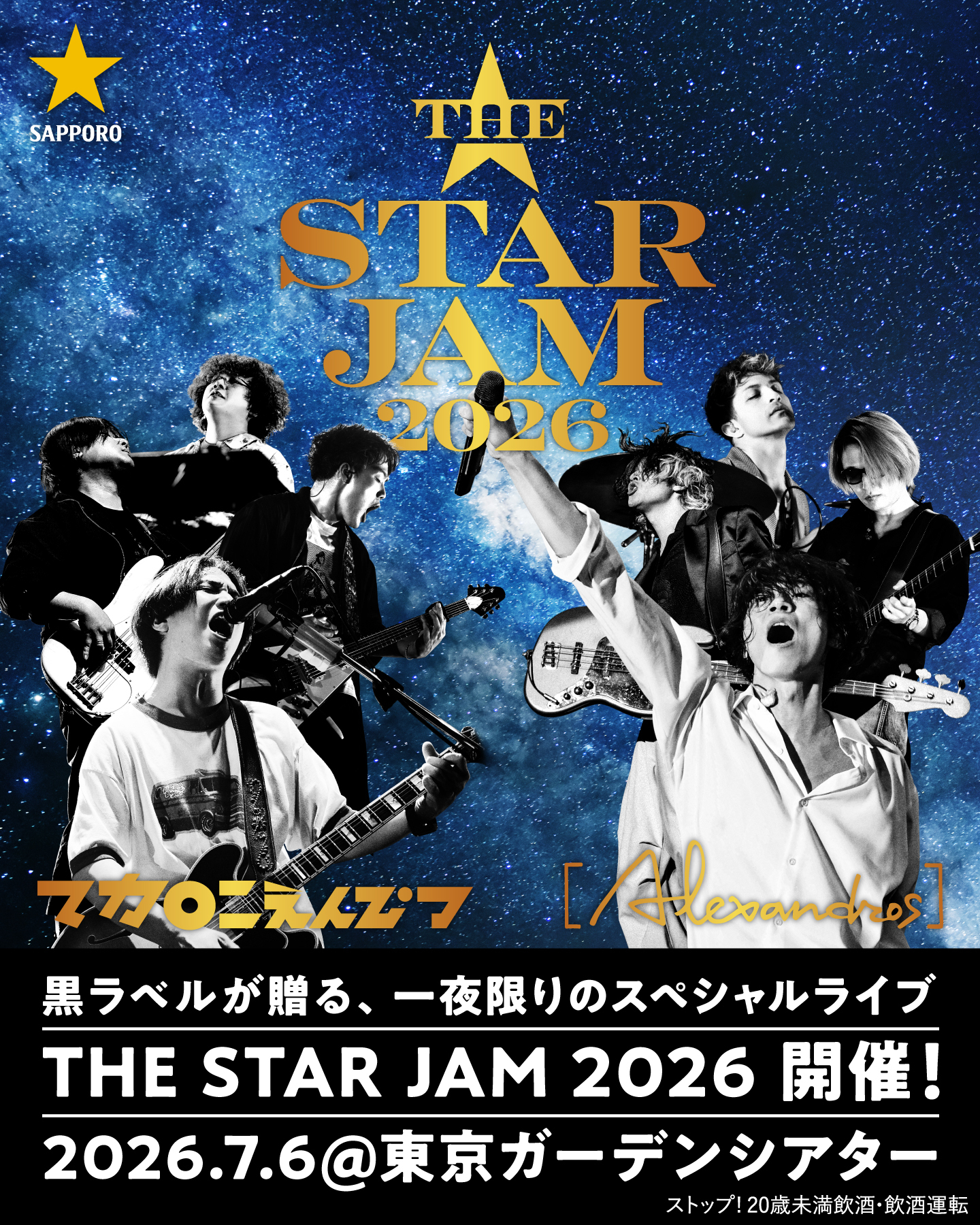 7月6日(月)東京ガーデンシアターにて開催される「サッポロ生ビール黒ラベル」が贈る一夜限りの特別なライブ、『THE STAR JAM』に出演決定しました。